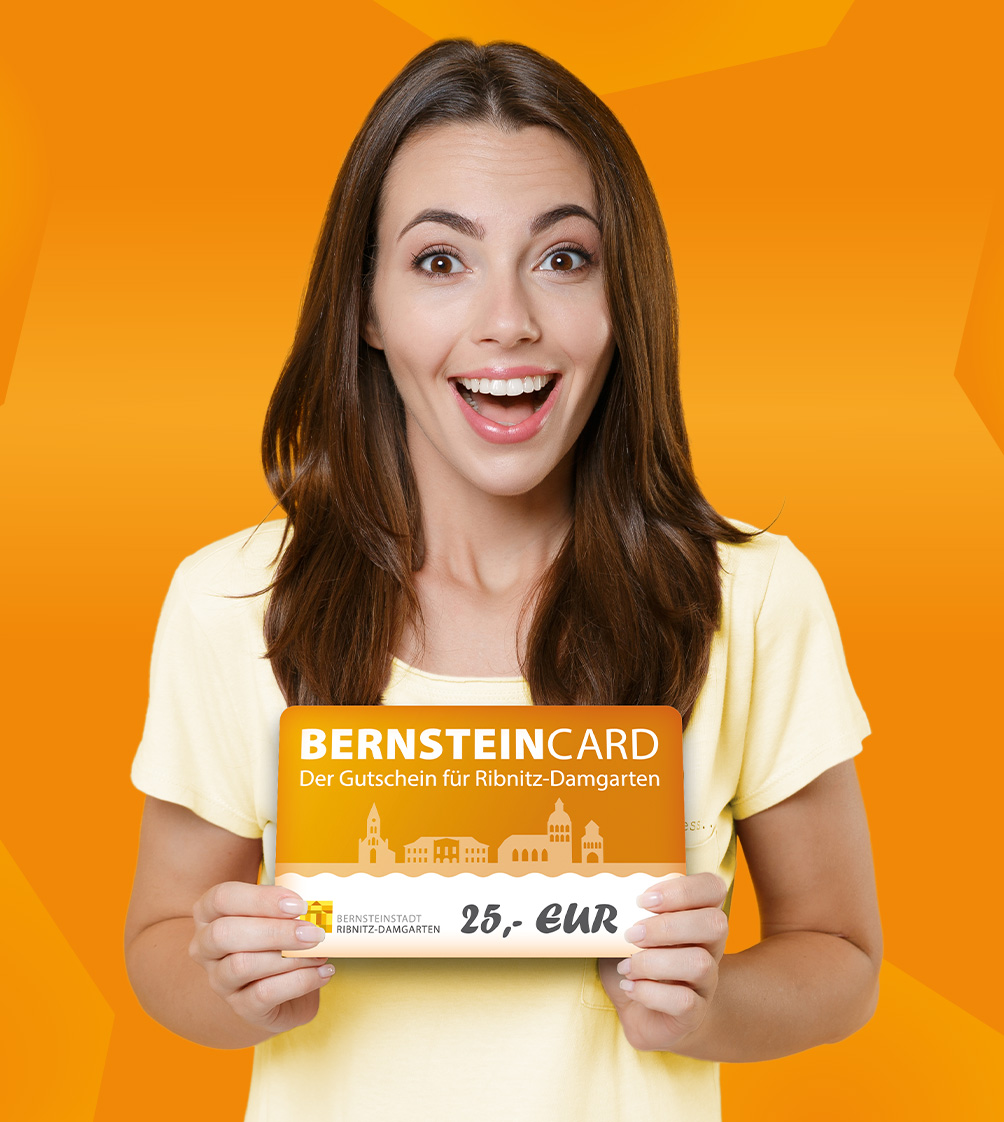 Die Bernsteincard kann in vielen lokalen Geschäften und bei Dienstleistern in Ribnitz-Damgarten eingelöst werden und stärkst damit gezielt unsere Innenstadt.